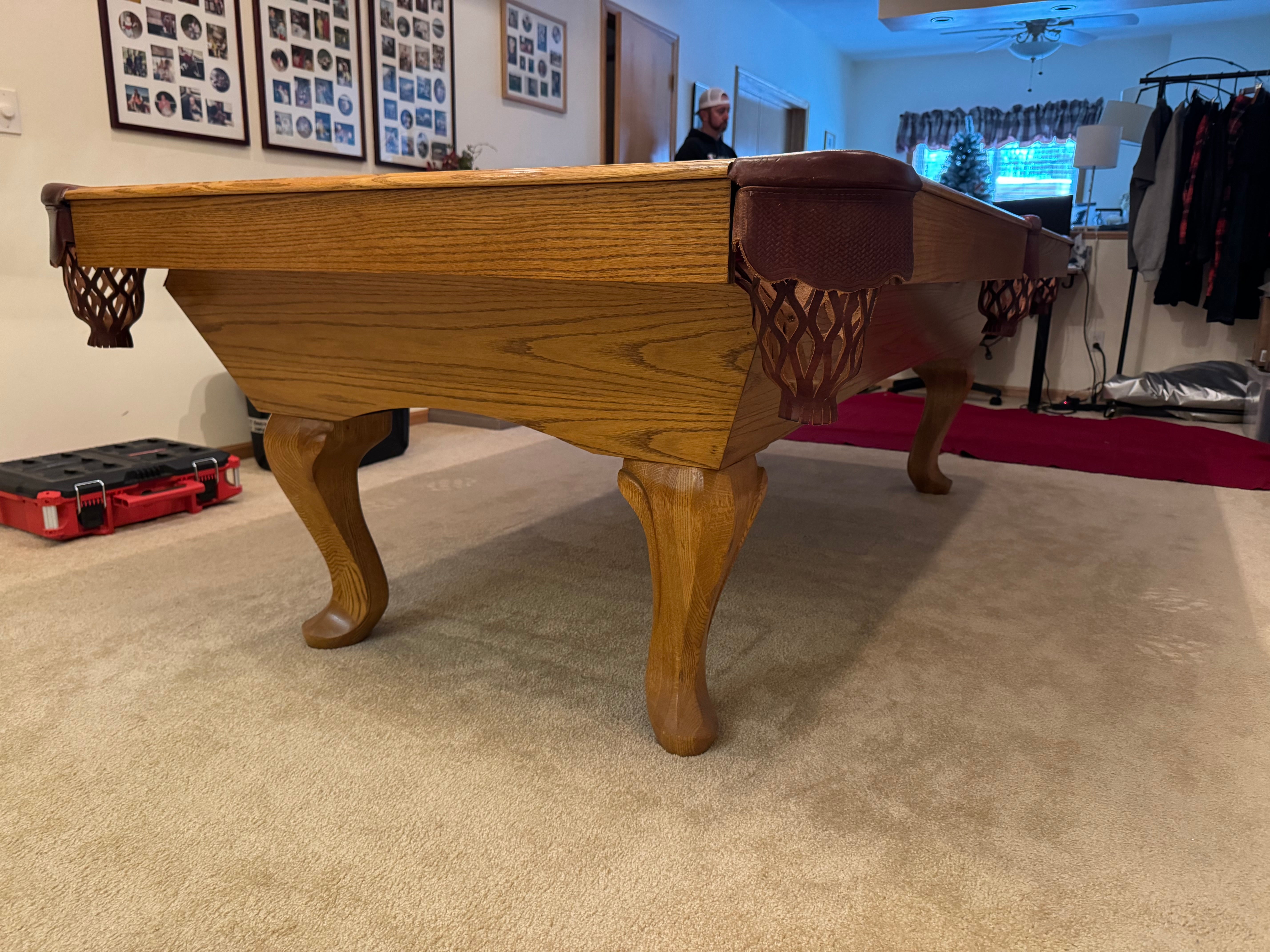 This is the Wyatt model by Legacy Billiards. The pool table is basically brand new and will include a set of balls, triangle, brush and new felt(you choose the color)