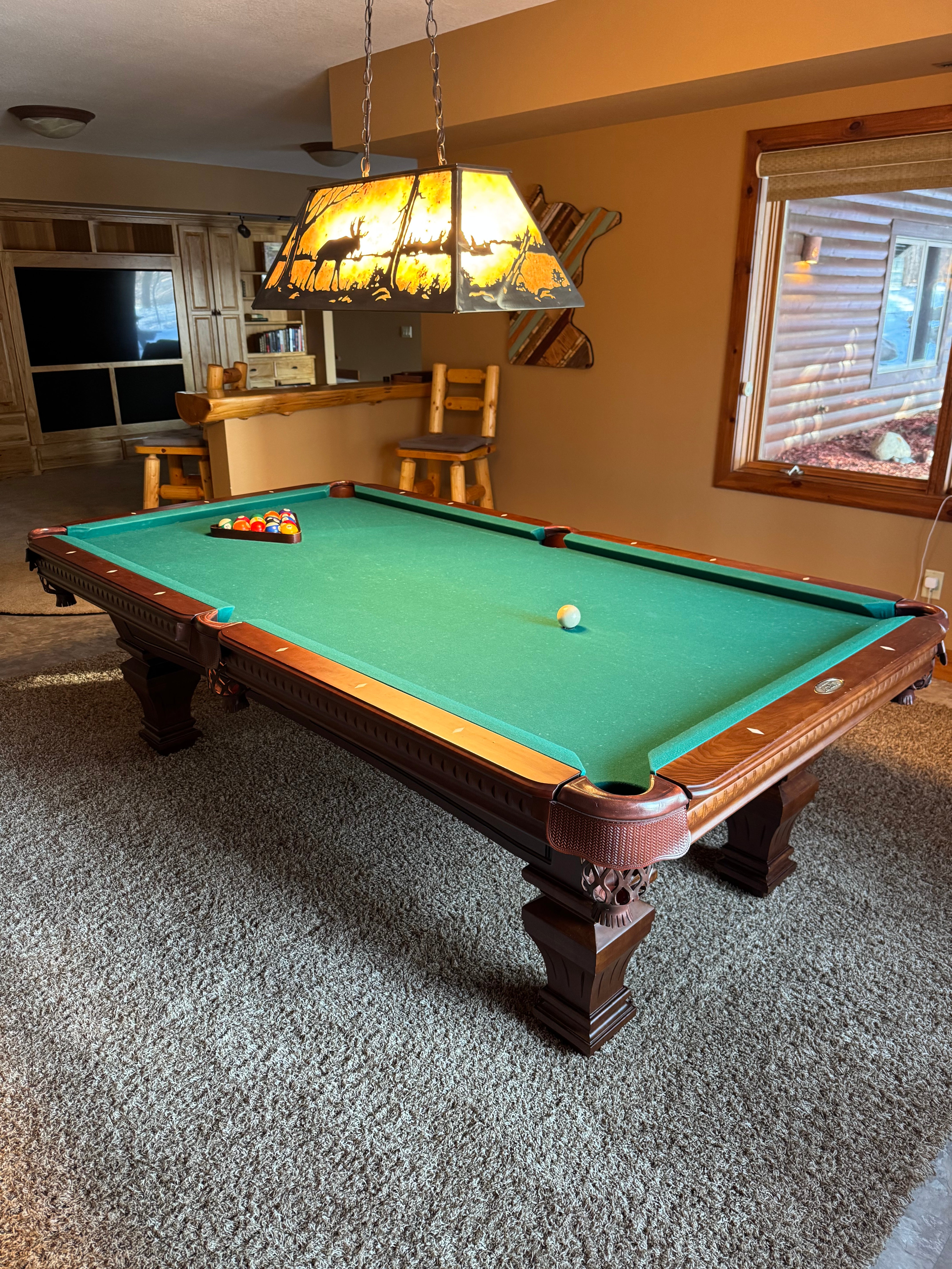 This is the Titan by American Classics. This table is 4 years old and in great condition. It comes with a set of balls, triangle, new felt(you choose the color) and pool cues. Also included is professional delivery and install done by The Pool Table Guys of Mn within 50 miles of Lakeville.