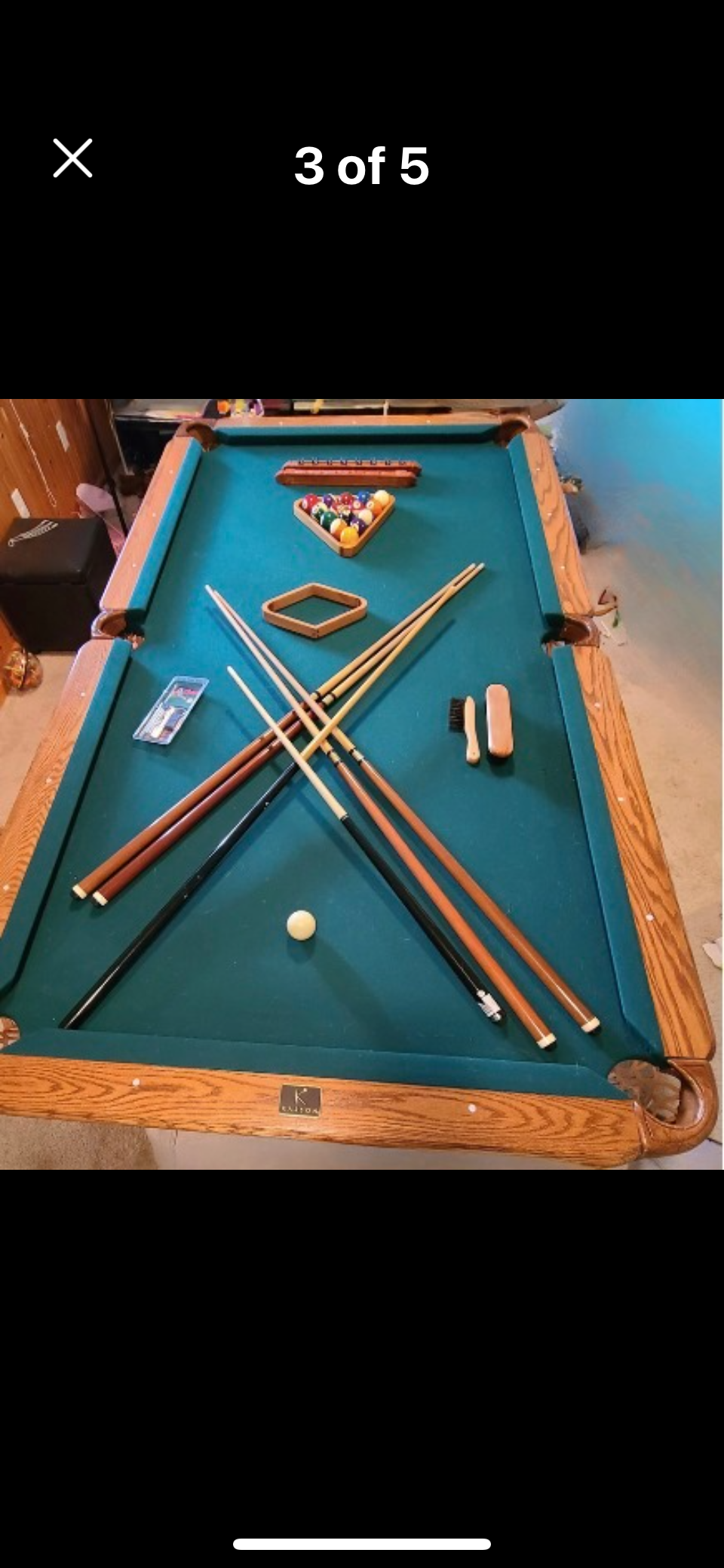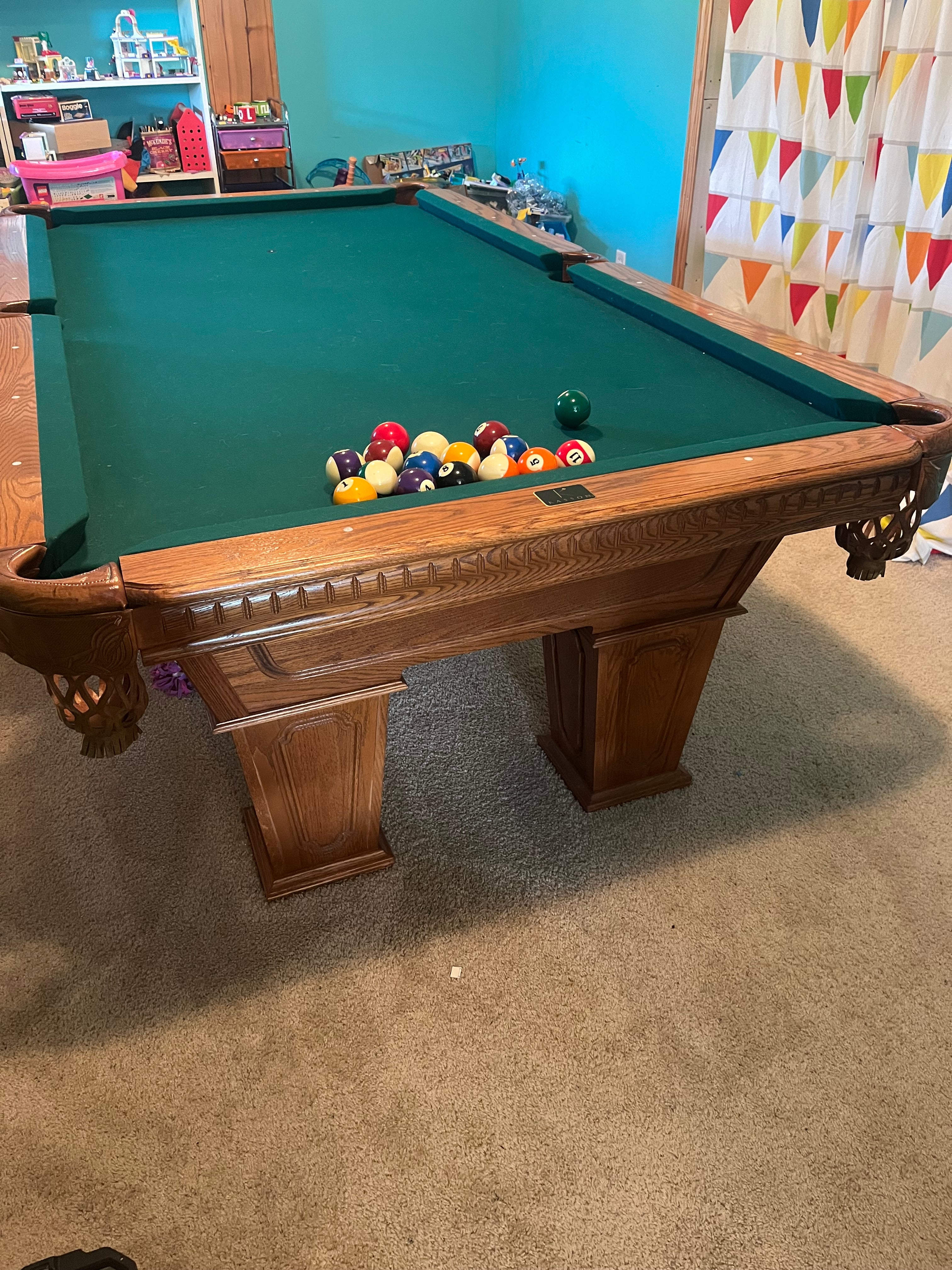 This table is in excellent condition and will include all the accessories. Also included in the price is new felt(you choose the color) and professional delivery and Installation by The Pool Table Guys.