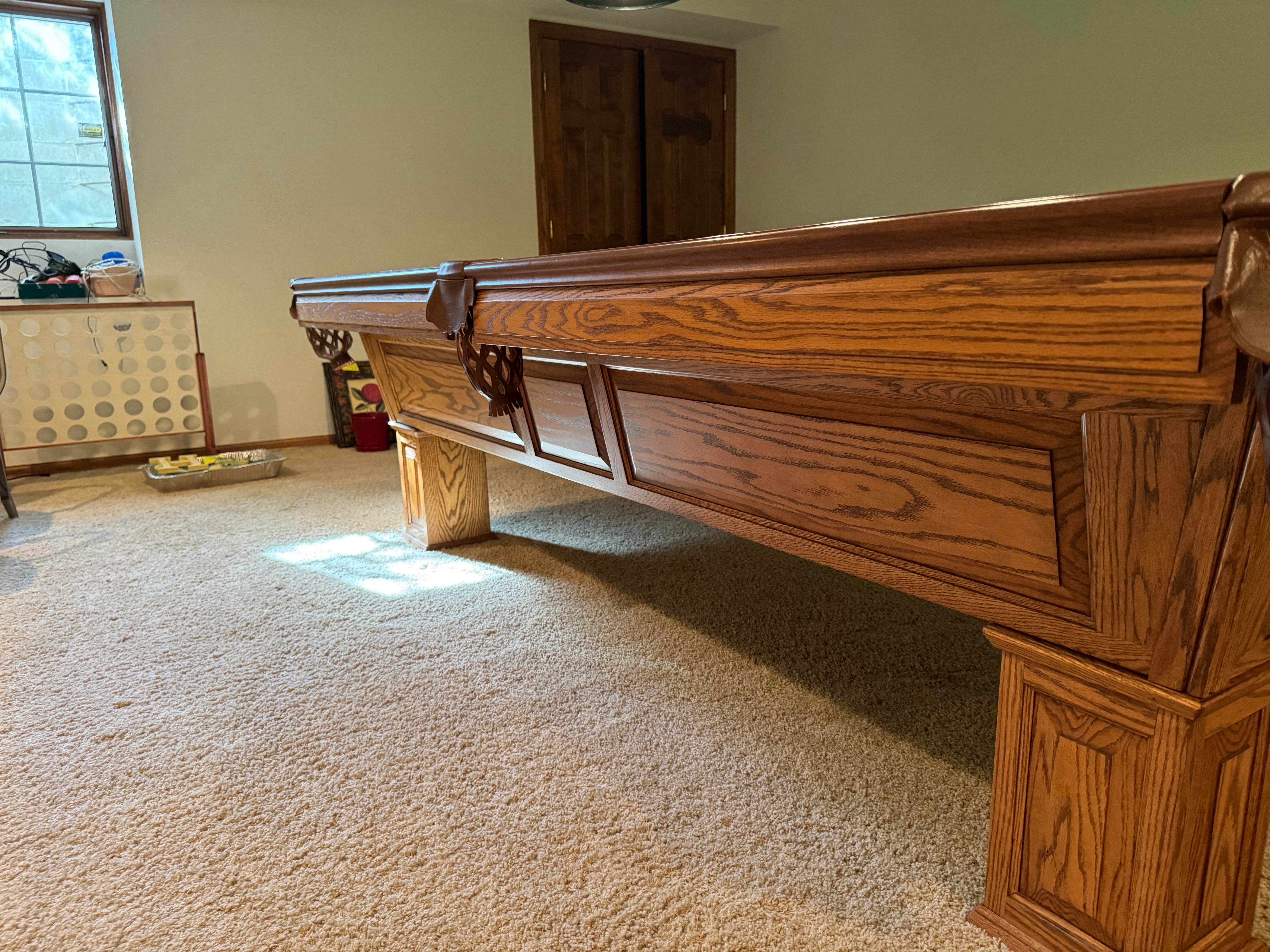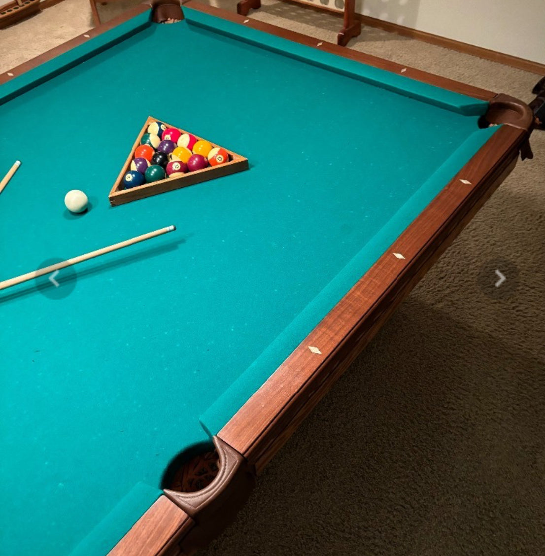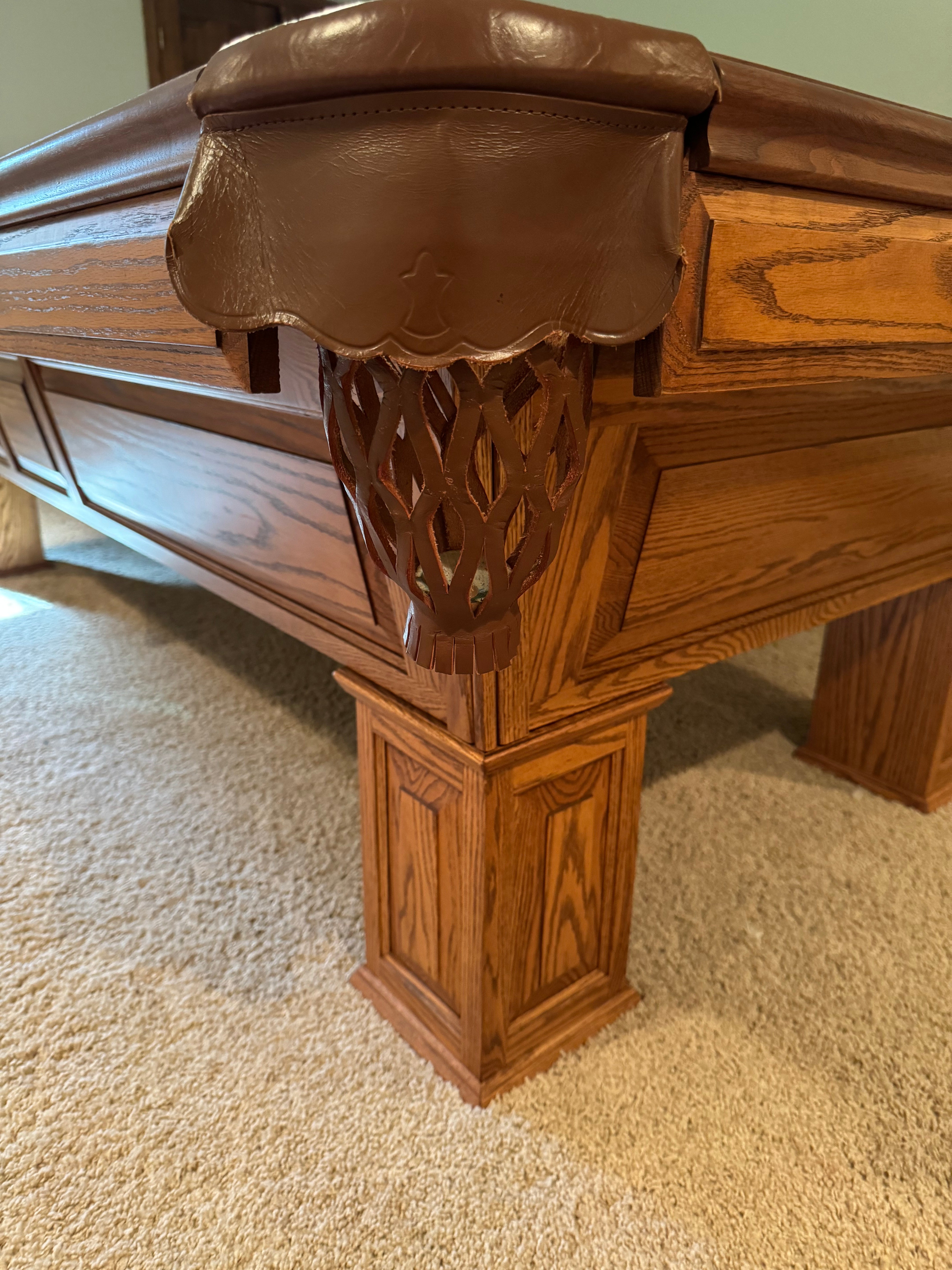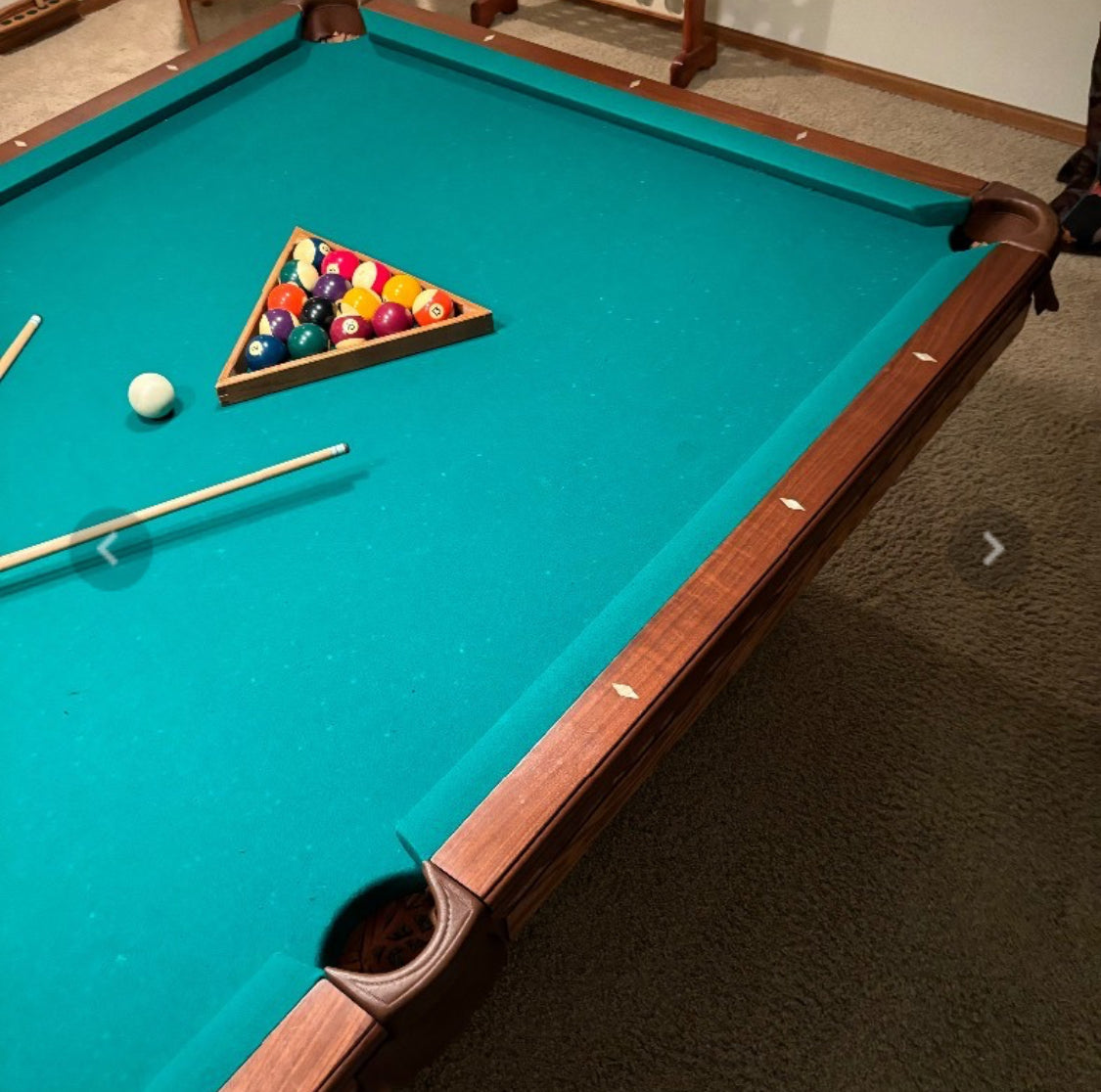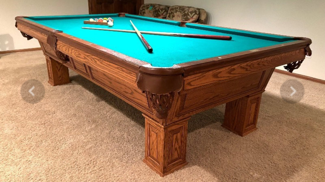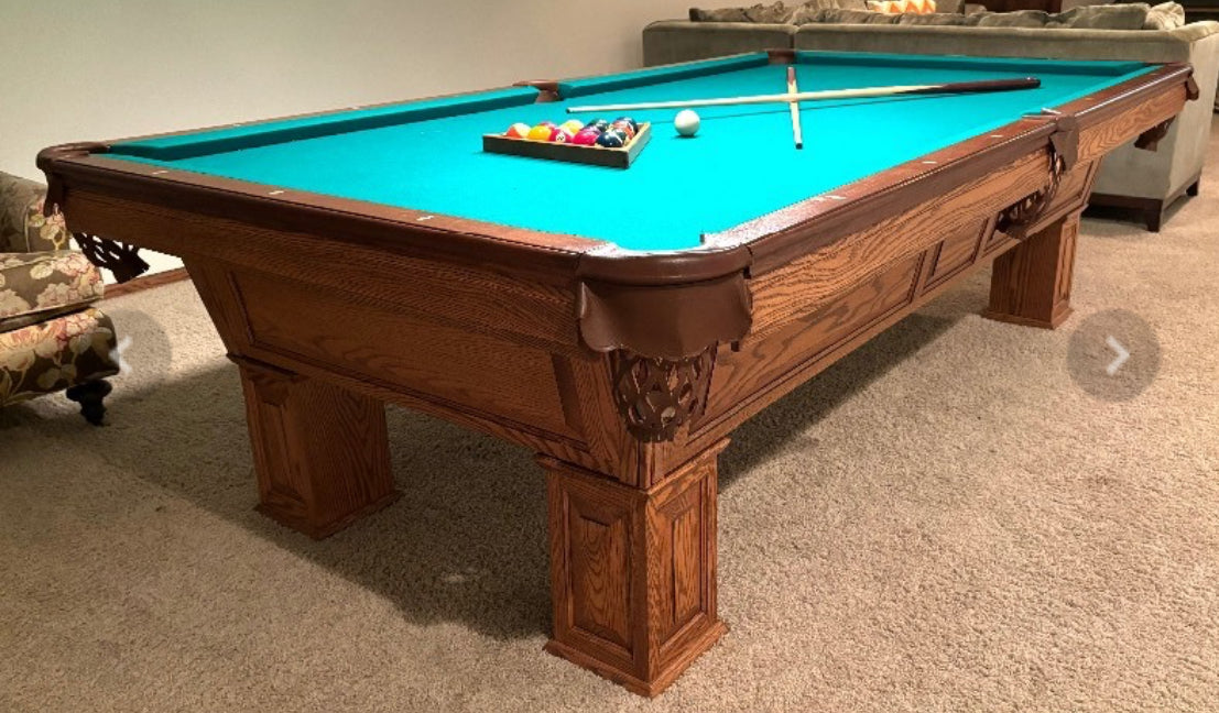Beautiful Custom made pool table by Peter's Billiards. Solid Oak table with 3-1" pinned slates, brand new k66 cushions, Aramith pool balls, triangle, cues and new felt (you choose the color). Delivery and installation also available for a fee. Call today with any questions or to schedule a viewing. 952-212-7665